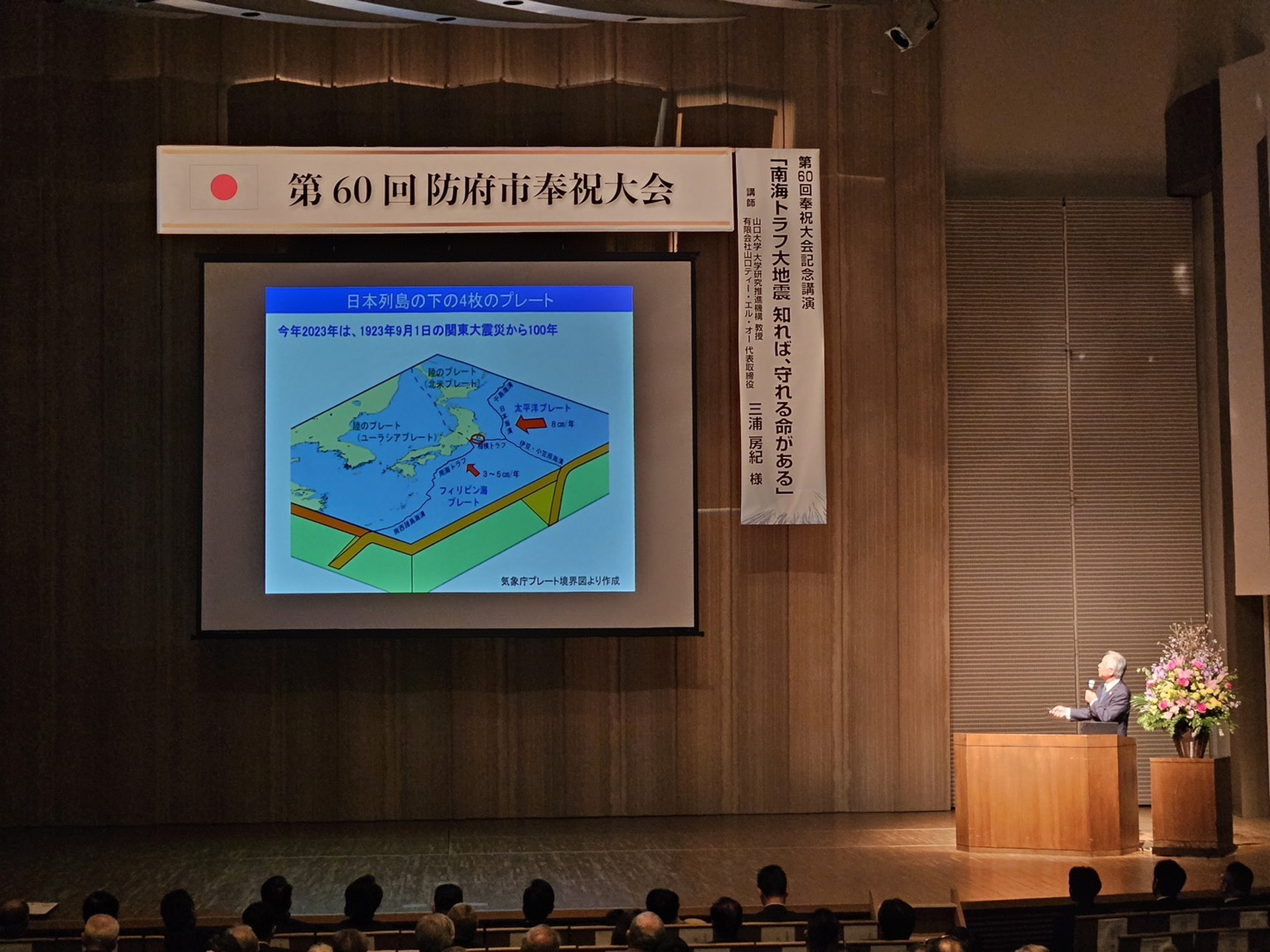記念講演会では、三浦房紀氏を講師にお招きし、「南海トラフ大地震 ~知れば守れる命がある~」をテーマにご講演をいただきました。