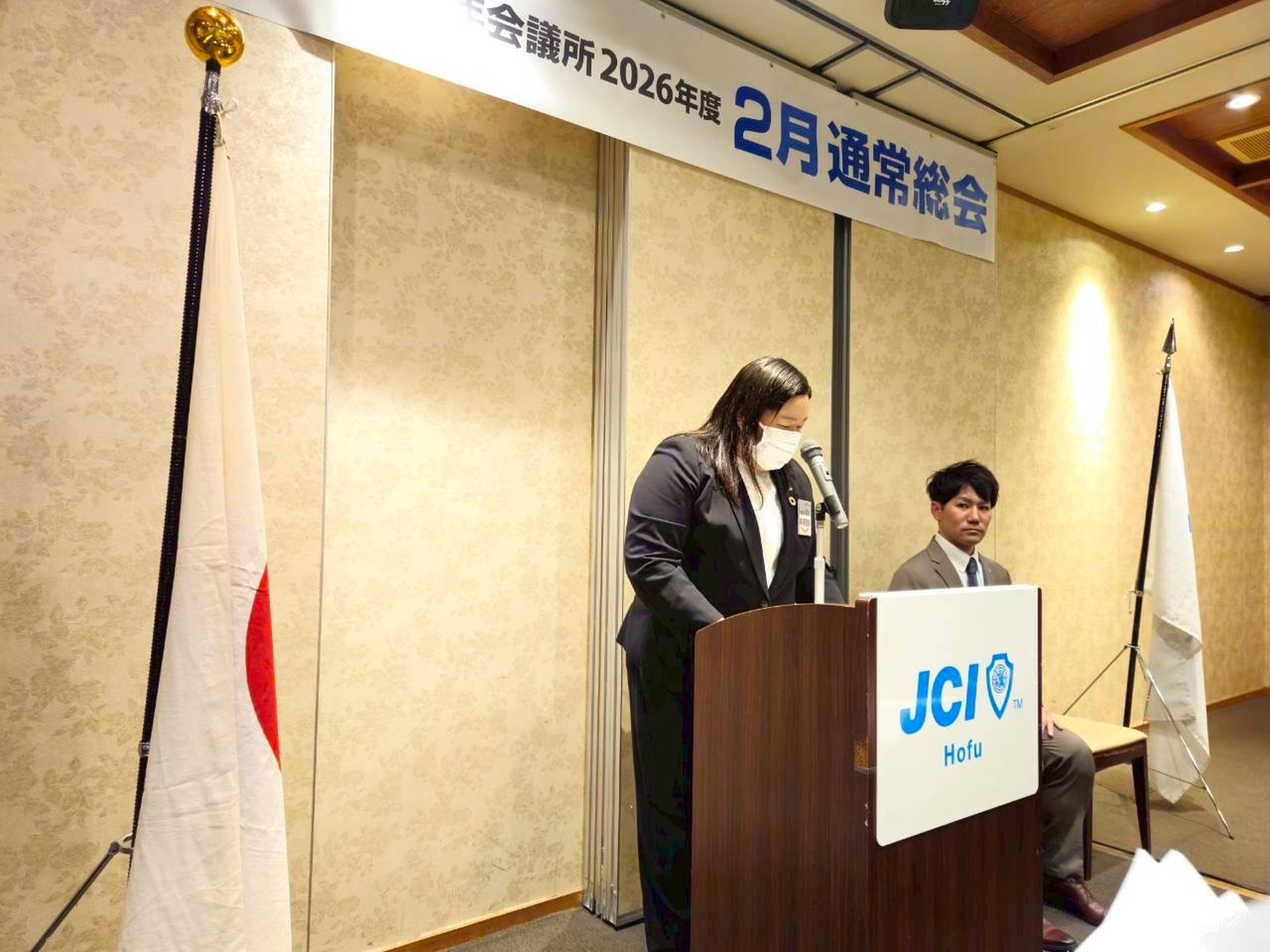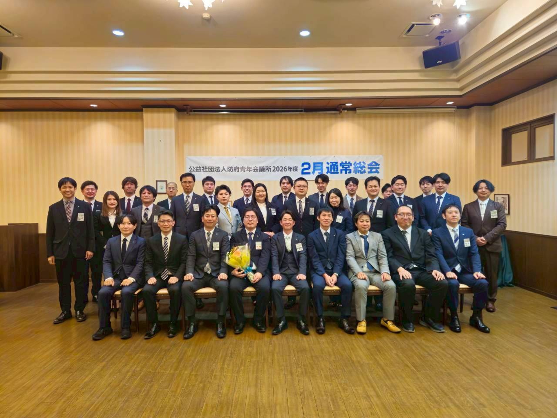 次世代育成委員会の加藤副委員長が議長として選任され、厳粛な進行の中、2025年度理事長である重田彰吾先輩より2025年度の事業報告、2025年度藤本専務理事より決算報告が行われました。その後、本総会をもって監事の任期を満了される原田圭輔先輩より監査報告をいただきました。全ての議決事項を賛成多数にて承認いただき2月通常総会は閉会いたしました。
